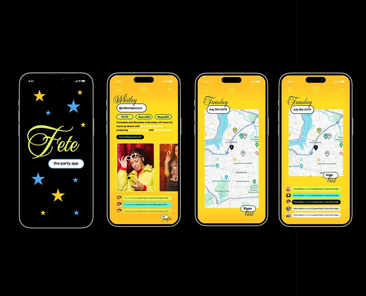I designed the UX/UI for two app prototypes. Fete, a social network based party planing app aimed at Gen Z ,and Temple, a customizable daily meditation app.